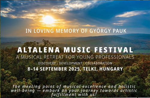 Das Altalena Musikfestival ist ein einzigartiger musikalisches Rückzugsort für junge Profis – in liebevoller Erinnerung an György Pauk. Dies ist mehr als ein Festival – es ist eine Reise der Entdeckung, Entwicklung und Zusammenarbeit, die musikalische Exzellenz mit ganzheitlichem Wohlbefinden vermischt.